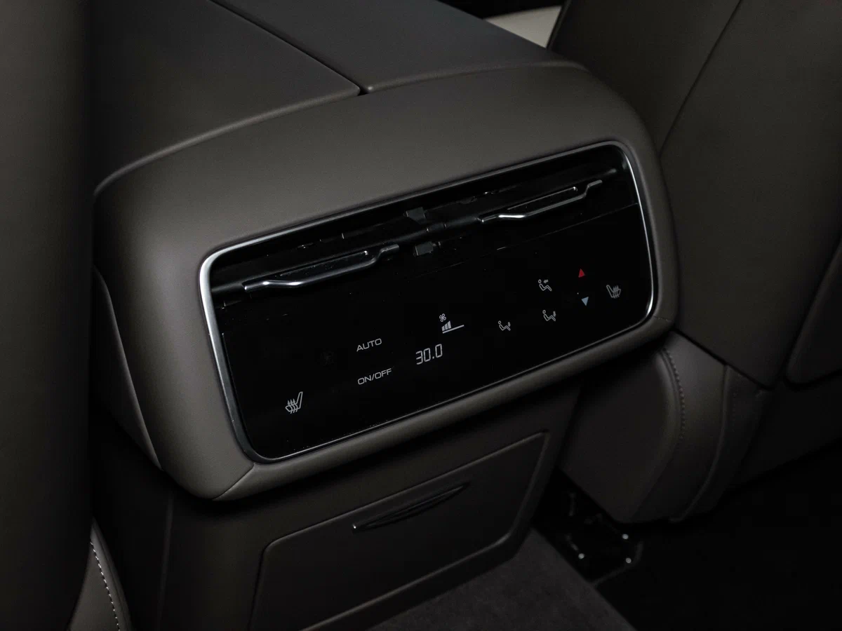 | Центральный подлокотник сидений заднего ряда с подстаканниками, отсеком для хранения и сенсорным экраном управления функциями автомобиля |