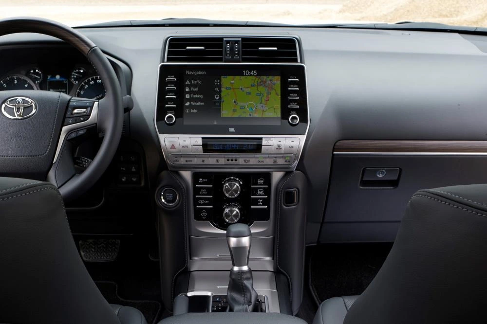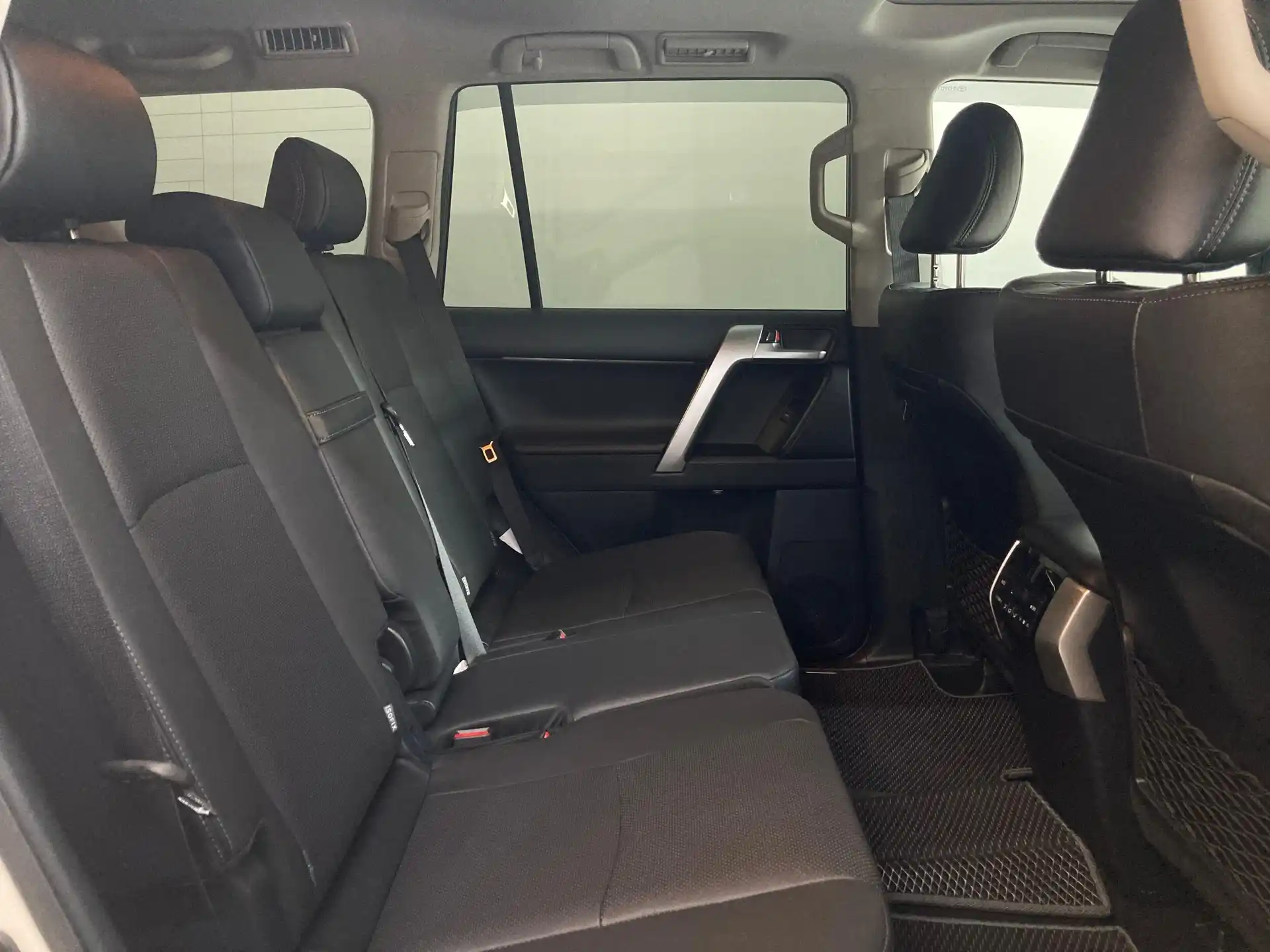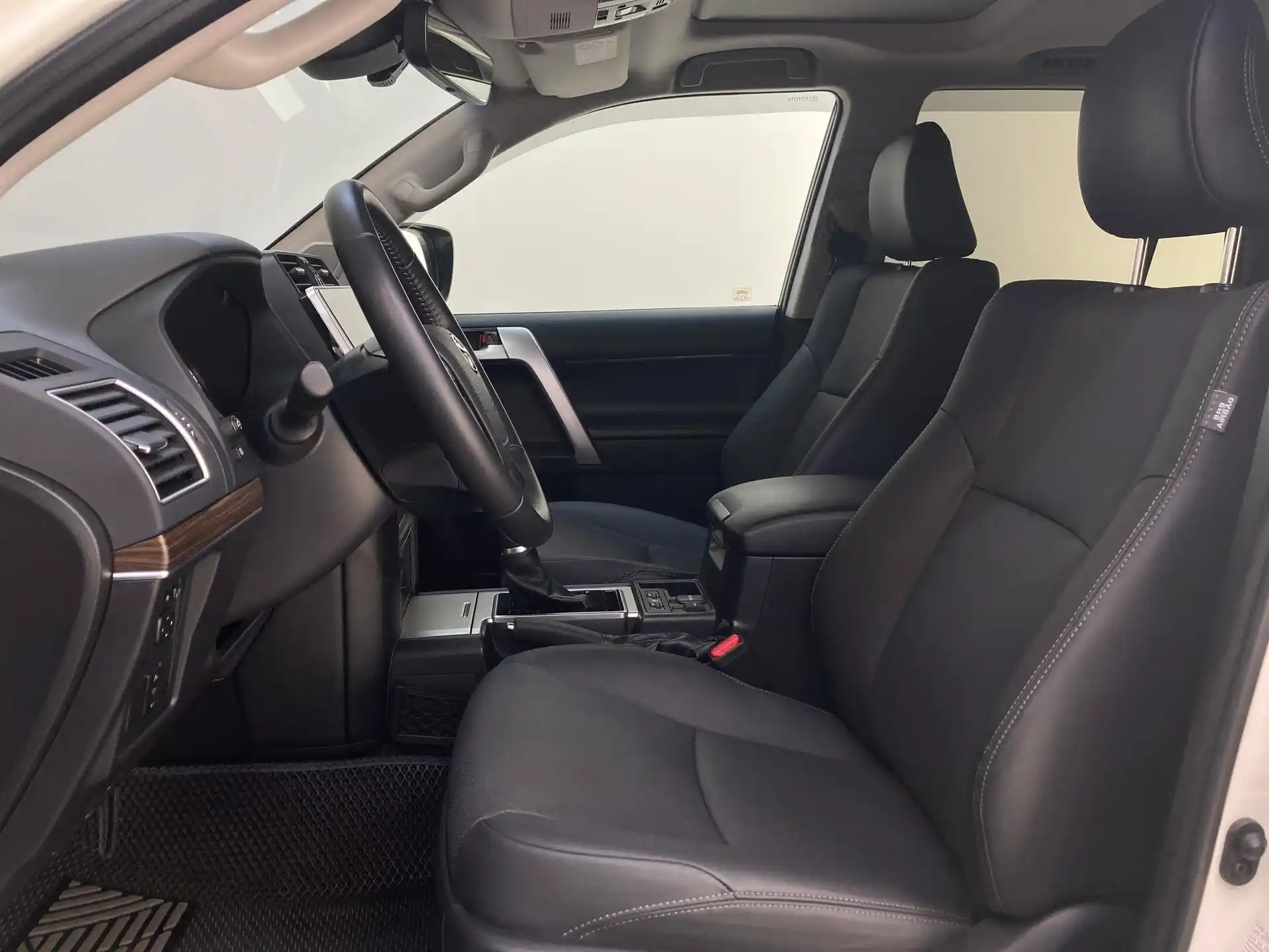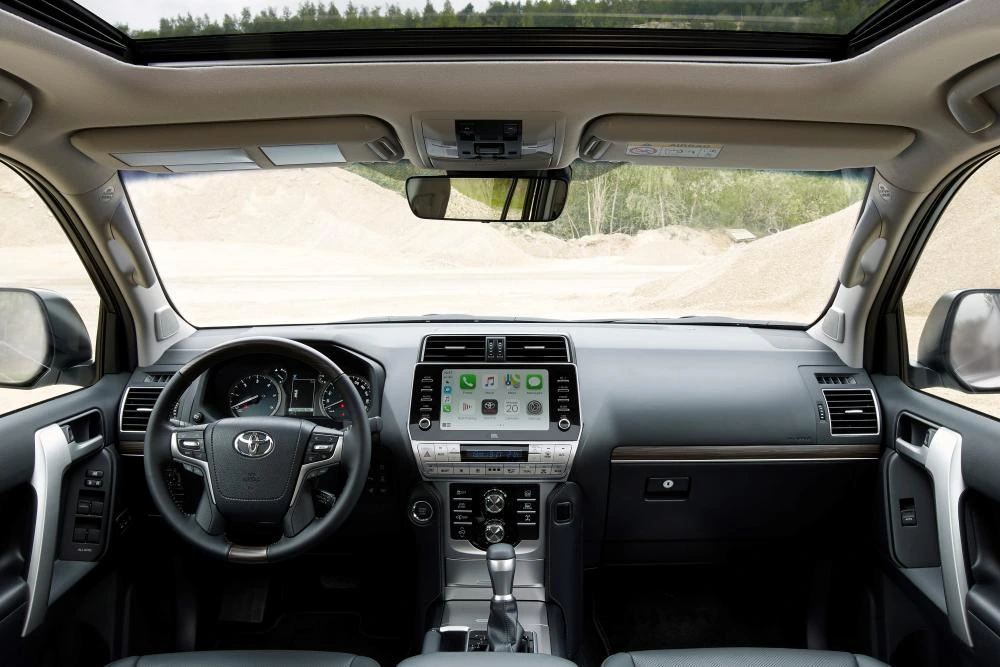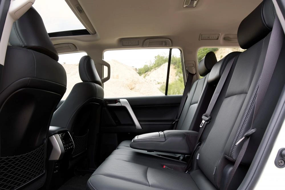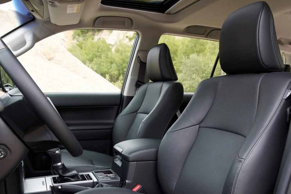 Обивка сидений и дверных панелей кожей оригинального дизайна и тиснением «LAND CRUISER PRADO»